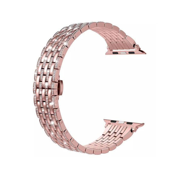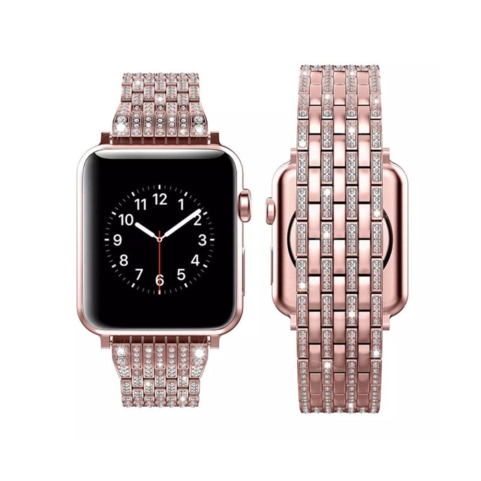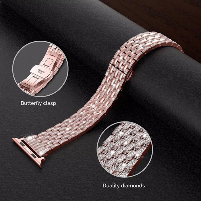 بند اپل واچ گلد پلیت دیاموند نگین دار رزگلد+ گارد واچ استیل دیاموند