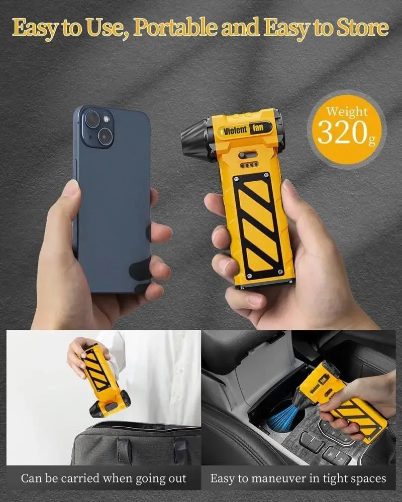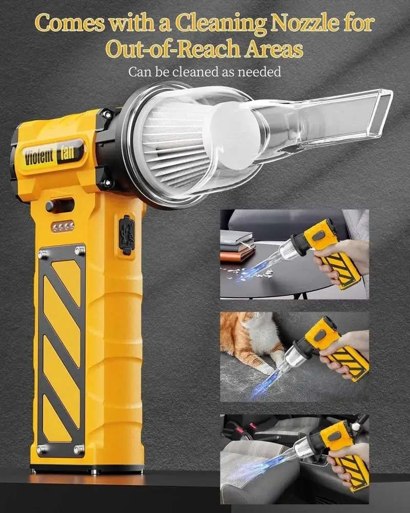 خرید جت فن مدل Violent Fan F015 به این دلیل منطقی است که یک ابزار چندمنظوره واقعی را در اختیار کاربر قرار میدهد؛ دستگاهی که هم دمش پرقدرت برای خارج کردن گردوغبار از شیارها، دریچهها و نقاط سختدسترس دارد و هم مکش موضعی برای جمعآوری ذرات سبک، در نتیجه نیاز به چند ابزار جداگانه را کاهش میدهد. این محصول با موتور پرسرعت (که در آگهیهای مختلف برای این خانواده محصول در بازه حدود 110,000 تا 130,000 دور در دقیقه ذکر شده)، کنترل سرعت قابل تنظیم/پیوسته برای کاربری دقیقتر، شارژ Type-C برای استفاده آسان در خانه، خودرو و سفر، و در بسیاری از معرفیها باتری پرظرفیت حدود 8000mAh، ترکیبی از قدرت، حملپذیری و سهولت استفاده را ارائه میکند؛ به همین دلیل برای تمیزکاری تجهیزات دیجیتال، داخل خودرو و نظافت روزمره منزل، یک گزینه کاربردی، بهصرفه و حرفهای محسوب میشود.