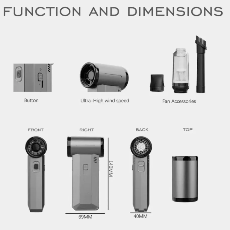 جت فن شارژی Violent F72 برای تمیز کردن کیبورد، لپتاپ، کیس کامپیوتر، خودرو، دریچه کولر، فیلترها، وسایل الکترونیکی و استفادههای خانگی و نیمهحرفهای گزینهای مناسب است.