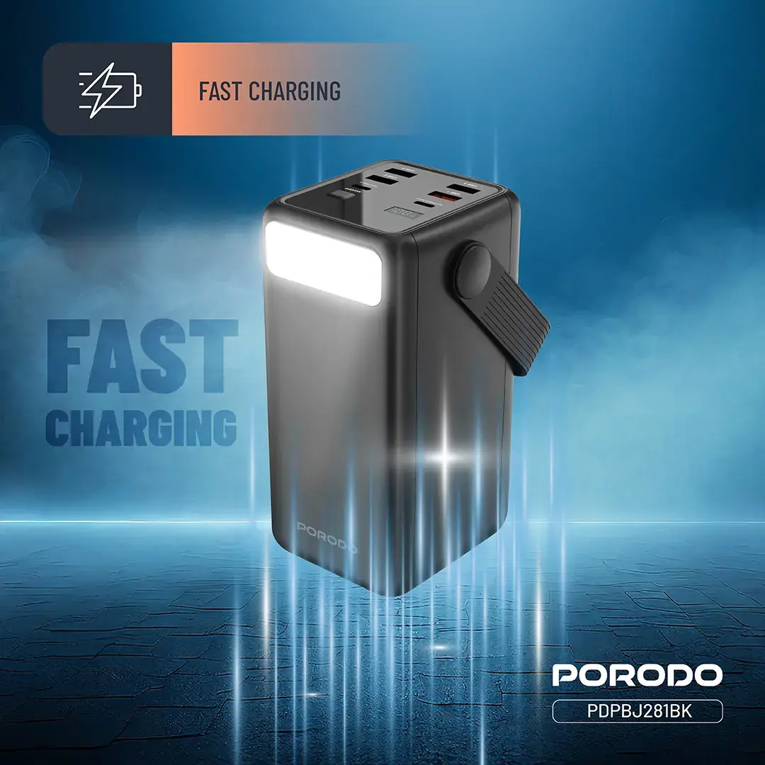 همین موضوع باعث میشود پاور بانک Porodo Lara از یک لوازم جانبی ساده فراتر برود و به یک ابزار ضروری تبدیل شود. در زمان قطعی برق، سفر، مسیرهای بینشهری، پروژههای کاری بیرون از دفتر یا حتی مواقعی که چند نفر همزمان به شارژ نیاز دارند، این ظرفیت بالا یک مزیت واقعی است، نه صرفاً یک عدد تبلیغاتی.