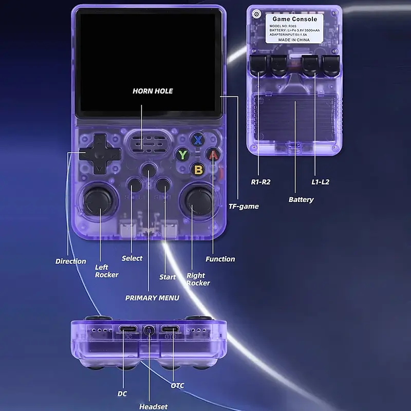 کنسول R36S بیشتر برای اجرای بازی‌های کلاسیک، نوستالژیک و شبیه‌سازهای قدیمی طراحی شده است. این دستگاه از بازی‌های کنسول‌هایی مثل PS1، PSP، N64، GBA، SNES، NES، Sega Genesis و چندین پلتفرم دیگر پشتیبانی می‌کند.